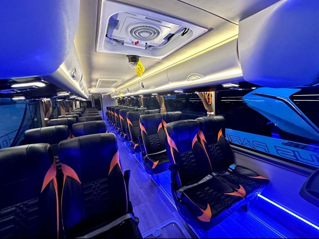 • Fitur Modern: Dilengkapi dengan AC merata, Mic, Sistem audio-video entertainment TV Youtube, dan colokan listrik.