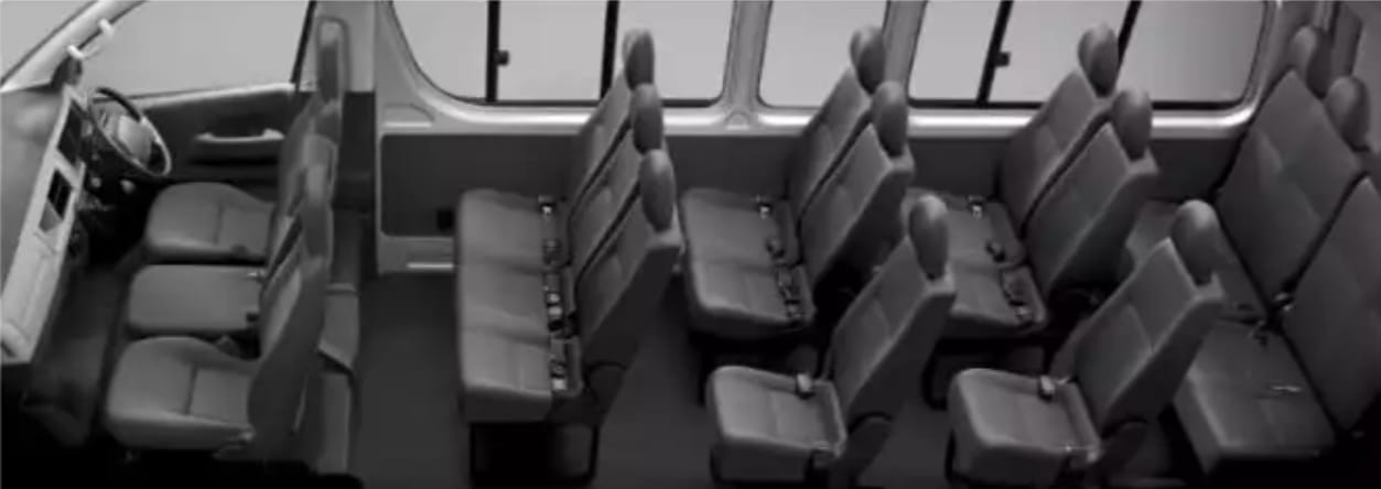 • Armada Terawat: Kami menyediakan Toyota Hiace Commuter yang terawat dengan fasilitas lengkap seperti AC, reclining seat, Colokan Listrik, dan sistem hiburan untuk kenyamanan maksimal selama perjalanan.